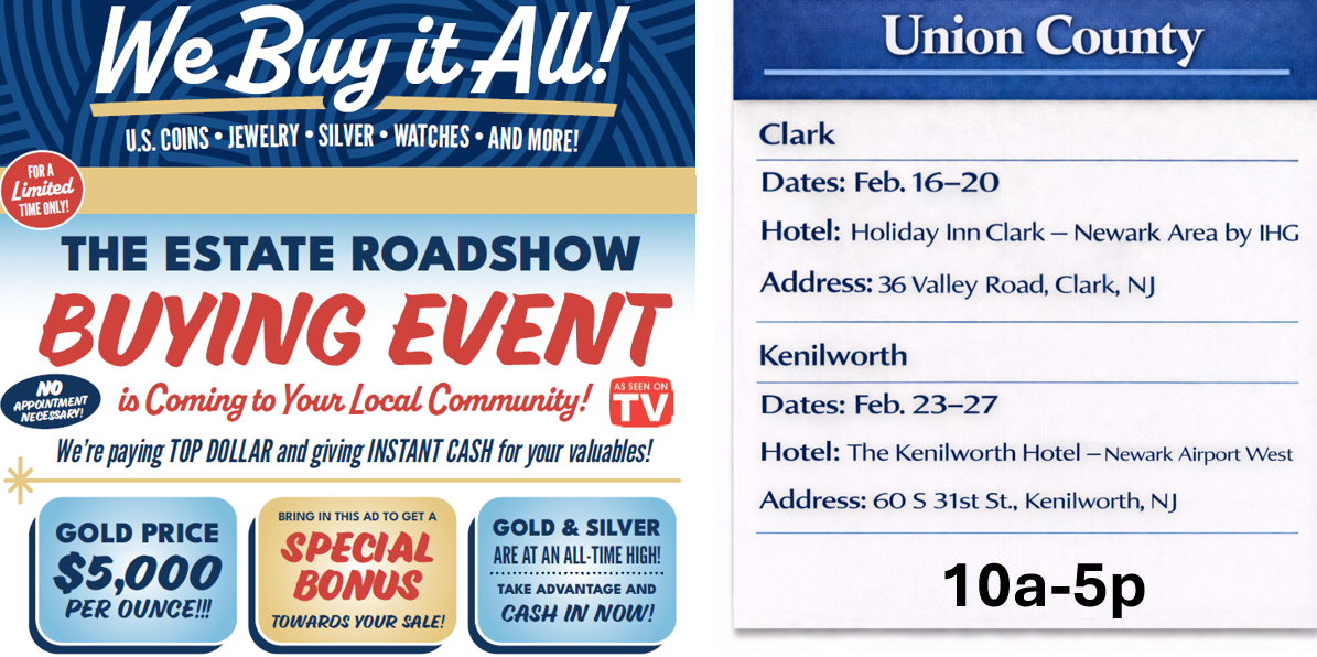 Do you have valuable items you'd like to sell? Estates Roadshow is the place to earn money for your items. We host buying events and travel to estate cleanouts throughout the area. Our keen appraisers can inspect your items and offer a fair purchase price. Whether you have scrap gold or vintage jewelry, our team will buy it.